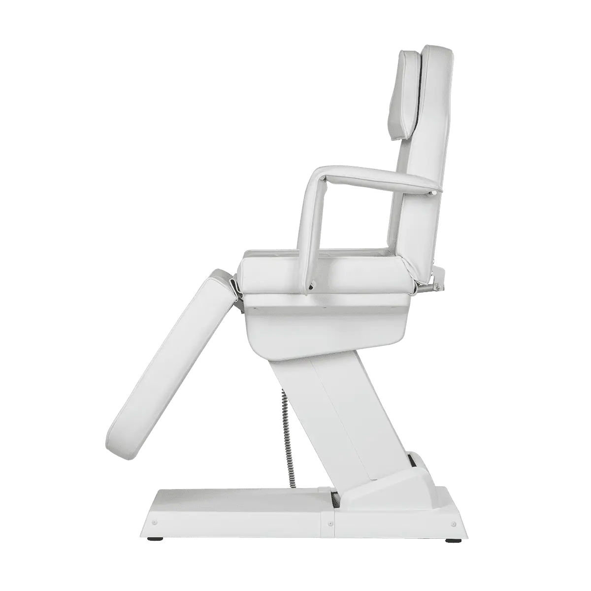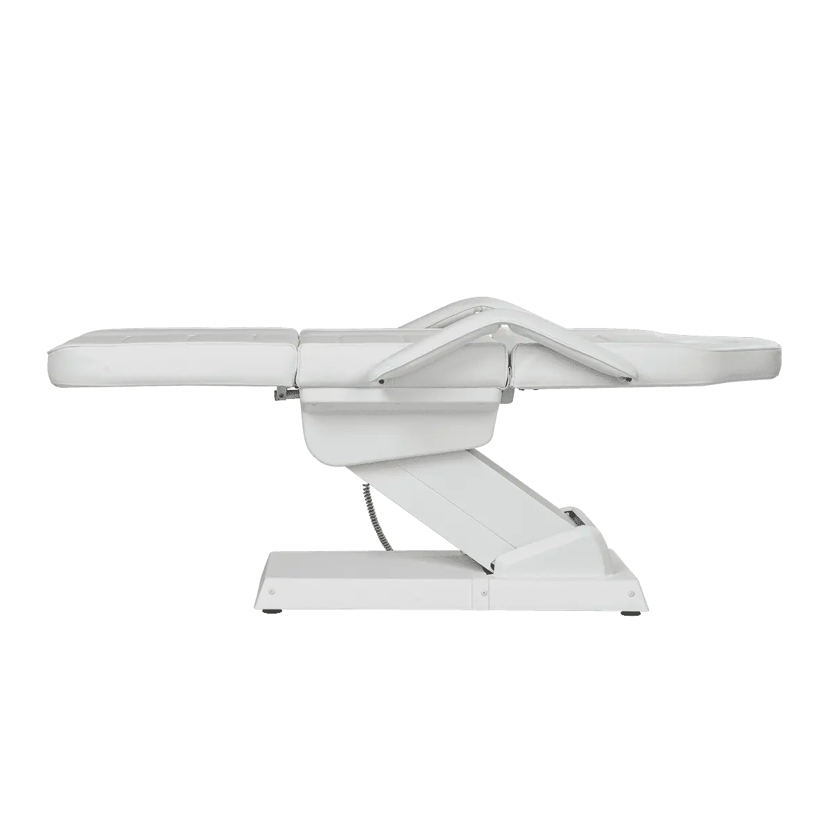 Комплектация: каркас с широким основанием на подпятниках, сиденье, спинка с вырезом для лица и съемным подголовником, мягкий элемент для ног, съемные подлокотники, электропривод (3 мотора).