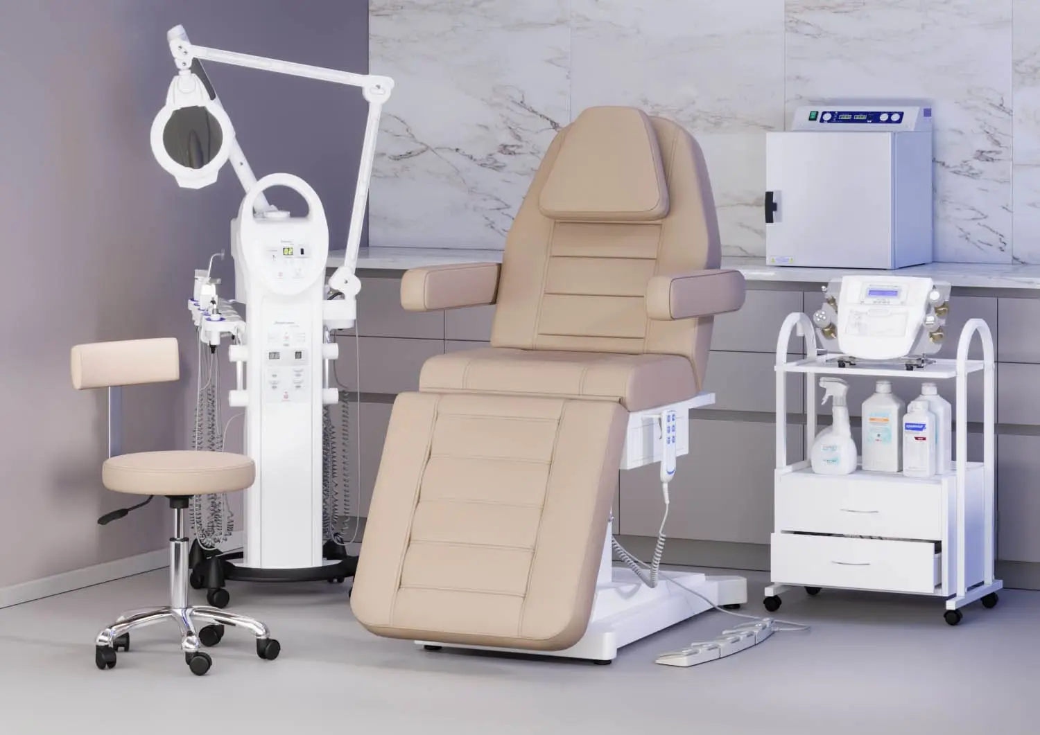 Функциональное косметологическое кресло Альфа-11, 3 мотора – это профессиональное оборудование высокого уровня. Подъем кресла, регулирование положения спинки и подножки осуществляется с помощью трех электромоторов. Для управления электроприводом предусмотрен удобный пульт, с держателем боковой части сиденья. Это кресло обеспечит необходимый комфорт клиентам и мастерам в процессе различных косметологических и массажных процедур. Обивка кресла устойчива к воздействию влаги, косметических и дезинфицирующих средств.