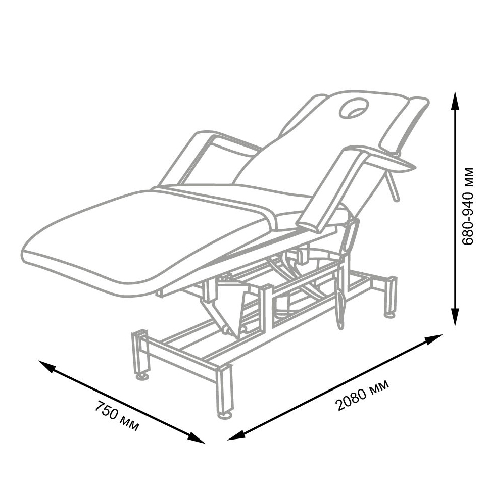 Характеристики косметологической кушетки МД-849 (Элегия-3А) Серебристый, 3 мотора: