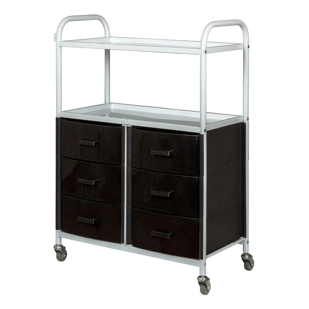 Для инструментов, аксессуаров и расходных материалов достаточно места в шести выдвижных ящиках. Полки можно использовать как для необходимых приспособлений, так и для установки небольших аппаратов. Несомненным плюсом косметологического оборудования являются встроенные маневренные колесики. Мастер без особых усилий может перемещать косметологическую тележку по рабочей зоне.