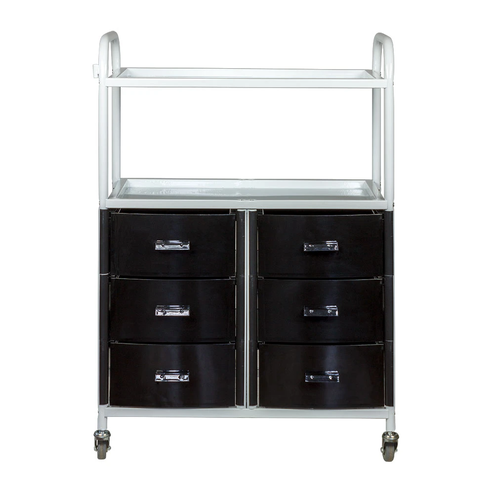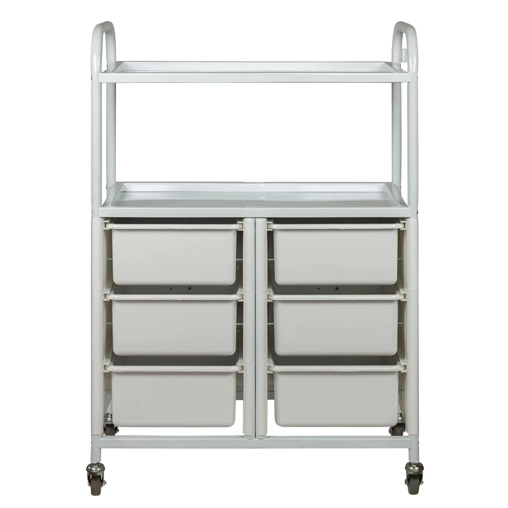 Комплектация: каркас на поворотных колесиках, 6 ящиков, 2 полки.