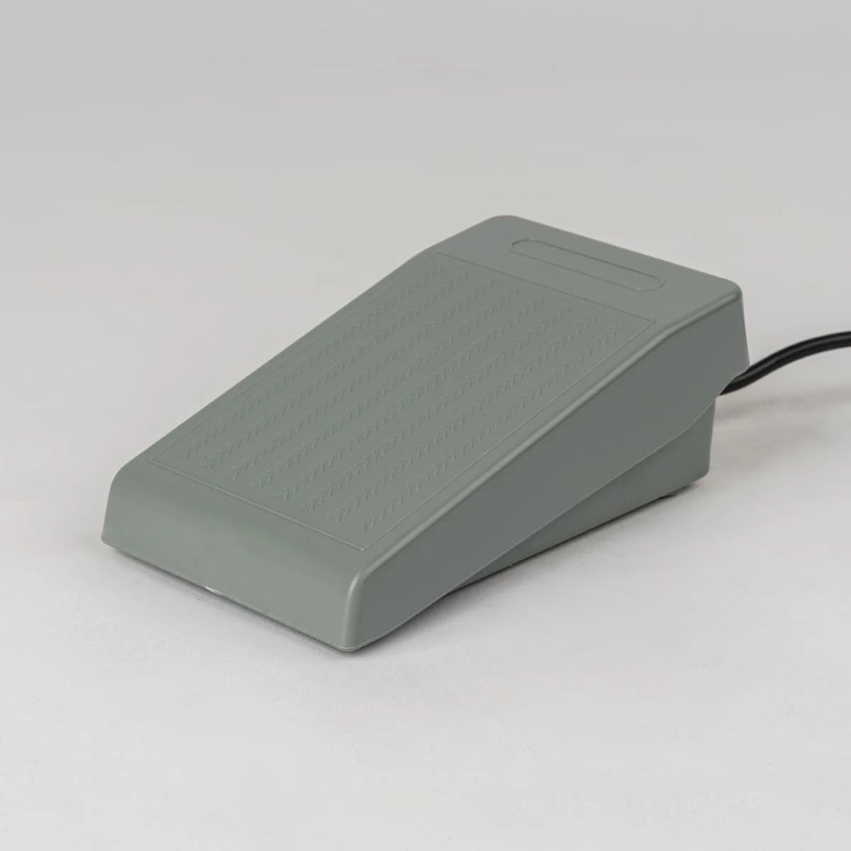 На лицевой части блока питания находится индикатор работы фрезера и переключатель скоростей. На боковой панели есть кнопка реверса (смена направления вращения фрезы). Для ручки предусмотрена подставка. В комплект входит ножная педаль плавного регулирования оборотов.