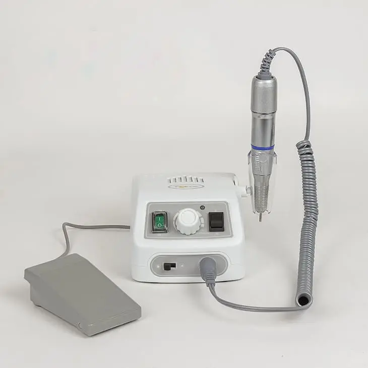 Аппарат мощностью в 65 Ватт достигает 35000 оборотов в минуту. Ручка не нагревается благодаря системе охлаждения, поэтому маникюрный аппарат можно использовать непрерывно в течение нескольких часов. Фреза плотно фиксируется в зажиме, который не допускает вибраций во время процедуры.