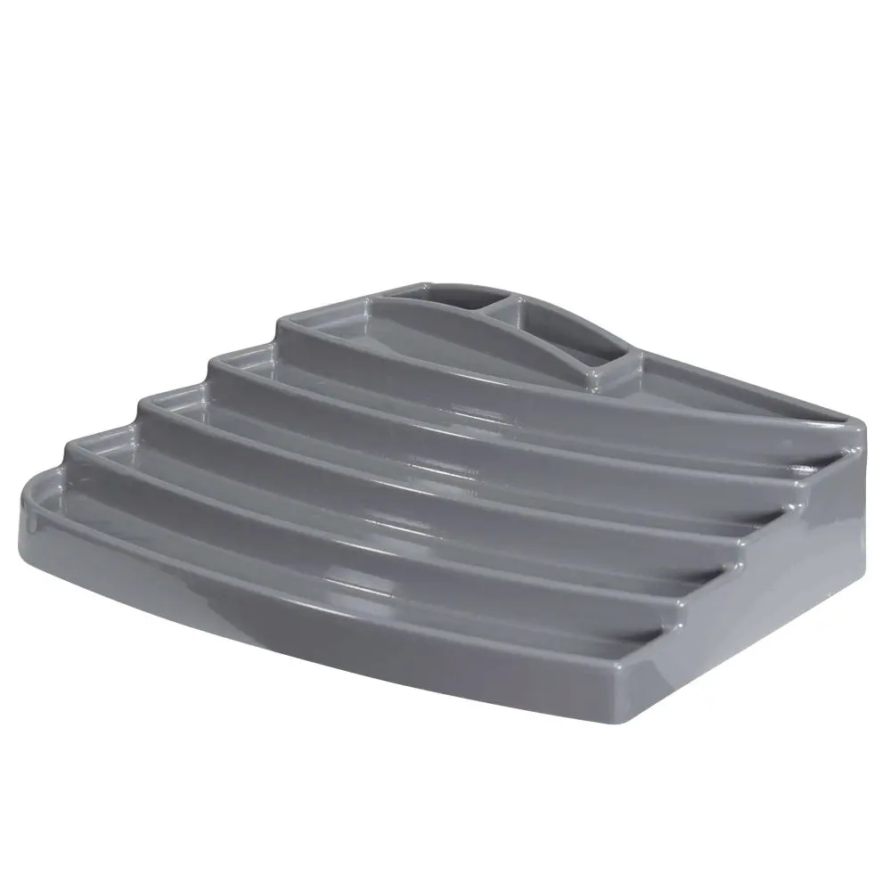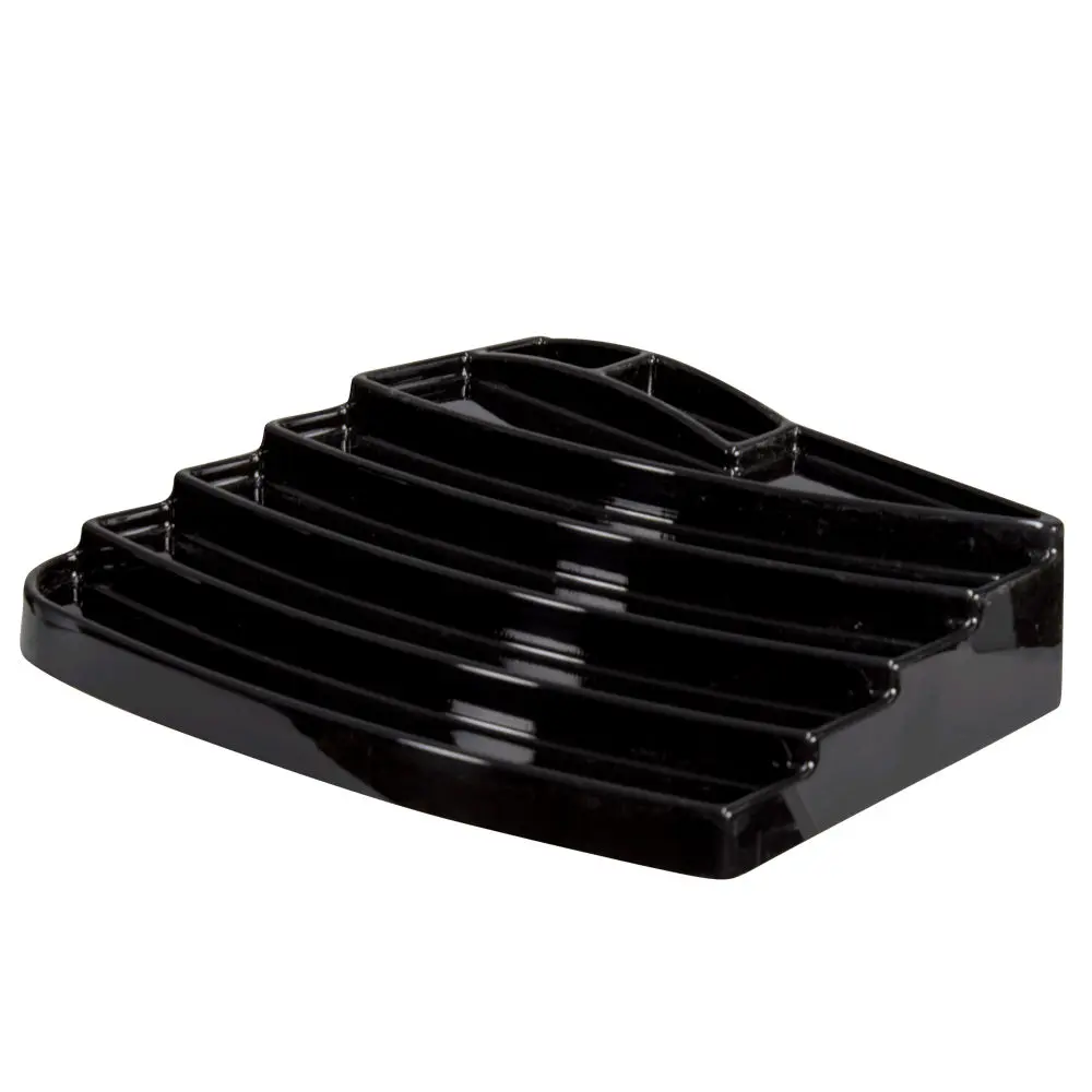 Пятиярусная подставка под лаки – это не только удобный аксессуар, но и стильный предмет декора. Она выполнена из качественного прочного пластика, устойчивого к воздействию косметических и дезинфицирующих средств. Подставка состоит из пяти полочек, размещенных на разной высоте, с защитными бортиками для удобного расположения лаков. На ней можно разместить достаточно большое количество лаков и все они будут хорошо видны. С подставки можно свободно взять любой лак и поставить его обратно, не опрокинув остальные. Это сделает процесс выбора подходящего цвета комфортным и приятным.