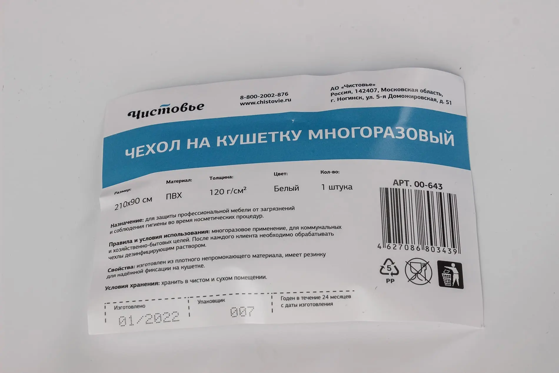 Чехол на кушетку многоразовый 210х90см