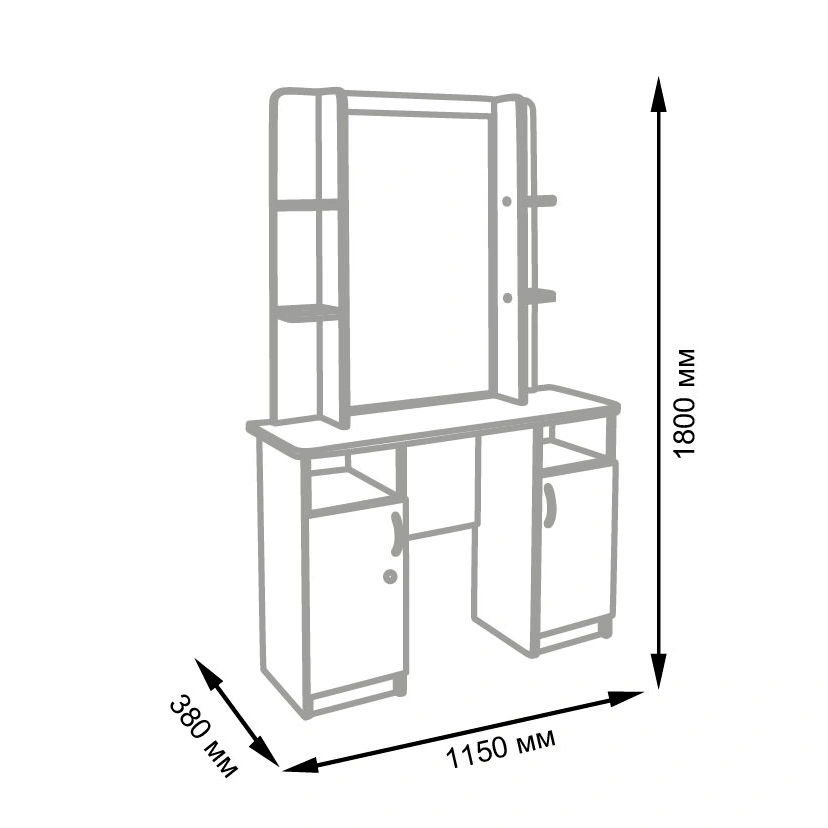 | 1800 мм | 1150 мм | 380 мм |