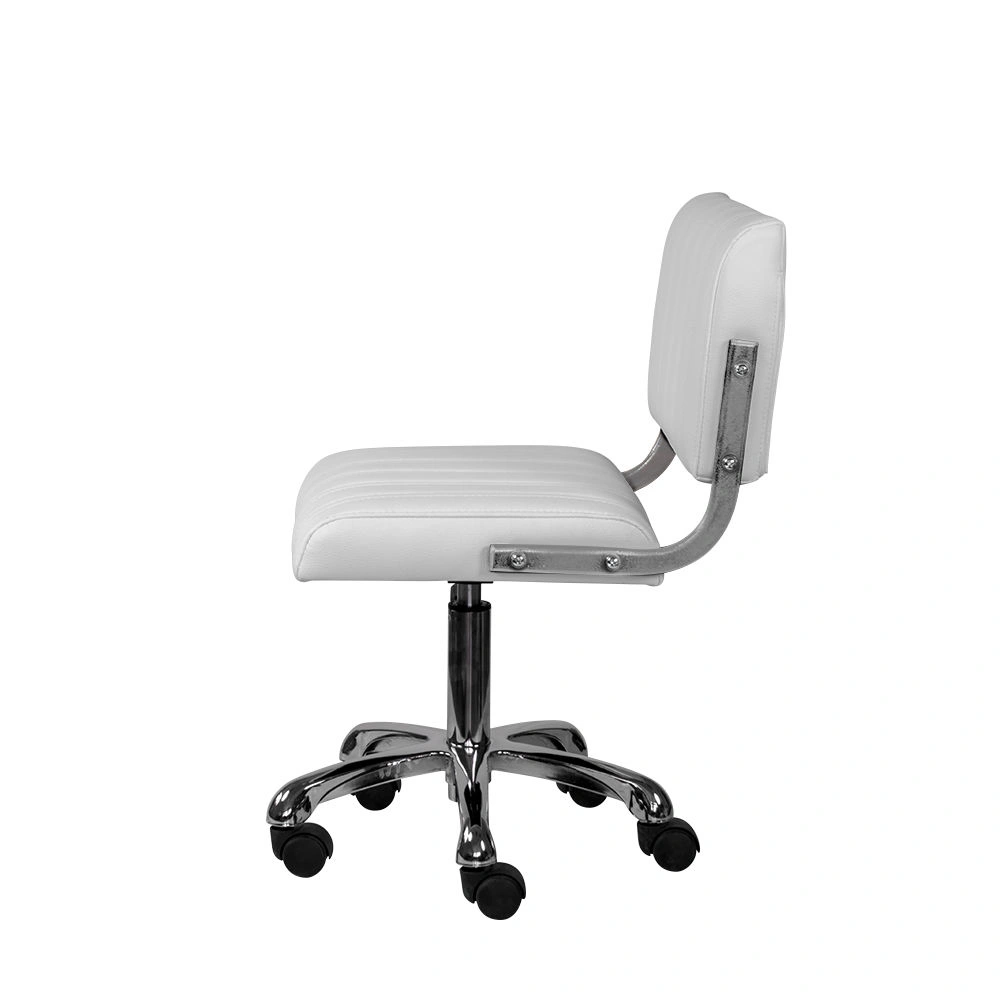 Обивка стула мастера – экокожа. Материал прочный, гладкий и приятный на ощупь. За счет своей структуры экокожа устойчива к истиранию и царапинам. Благодаря широкому выбору цветовых решений можно подобрать стул мастера для любого интерьера салона красоты. В качестве наполнителя использован эластичный поролон, не оставляющий вмятин на поверхности после использования.