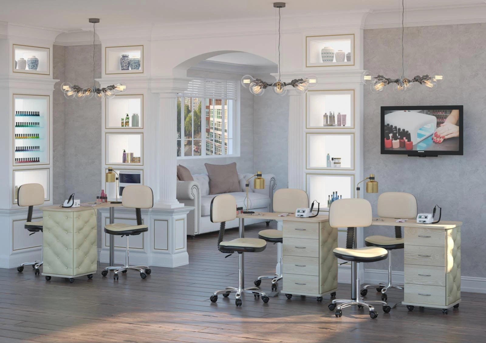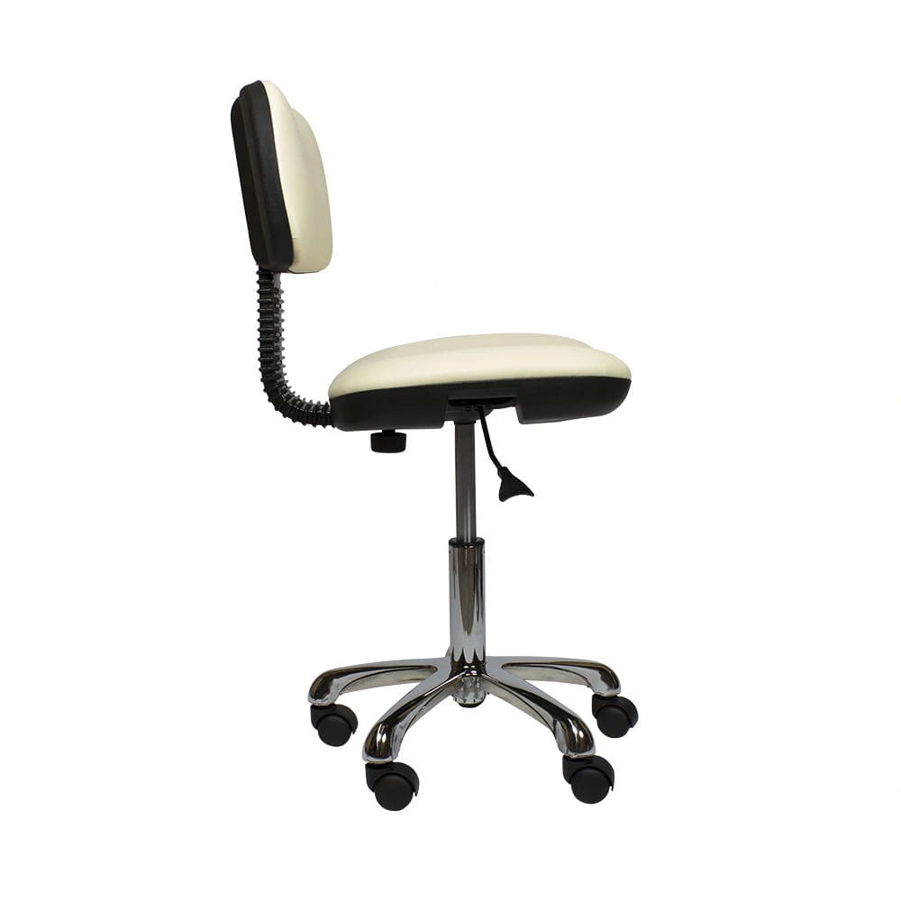 Во время работы мастеру по педикюру, как и другим специалистам beauty салонов, необходимо свободно перемещаться в рабочей зоне, поэтому стул должен быть мобильным. Для этого основание модели Сеньор комплектуется вращающимися пластиковыми колесами. Само пятилучье изготовлено из прочного металла с хромированным покрытием. Оно выдерживает рабочие нагрузки, делает стул устойчивым и выгодно подчеркивает его дизайн. Регулировка по высоте осуществляется с помощью надежного пневматического подъемника (газлифта).