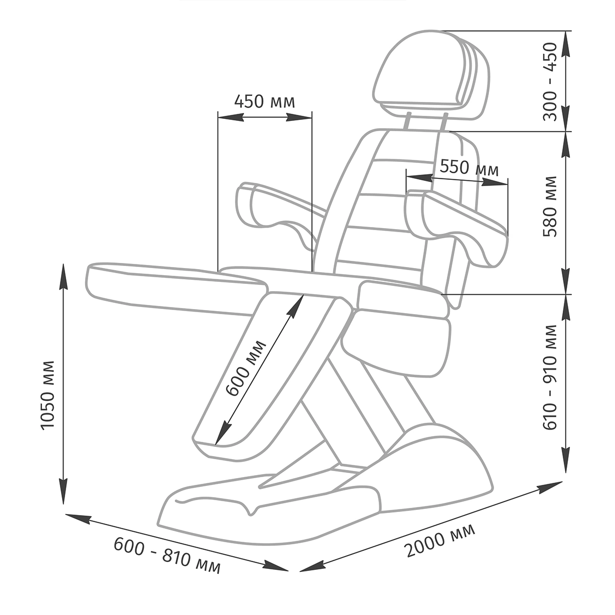• Длина кресла: 2000 мм