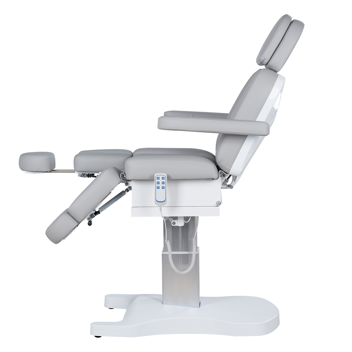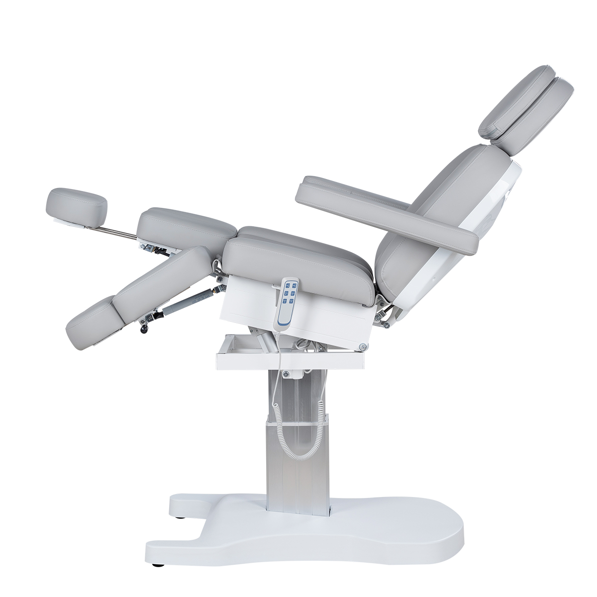 Педикюрное кресло Мэйджик Подо, 3 мотора гармонично сочетает в себе инновационные технологии, современный дизайн и хороший функционал. Высота, положение спинки и изменение угла наклона кресла регулируются с помощью трёх электромоторов с пульта управления, ножки – с помощью пневматики, все это позволяет быстро и с комфортом для клиента менять положение мягких элементов. Металлическое продуманное основание в пластиковом корпусе с углублением для удобного подъезда мастера к креслу.