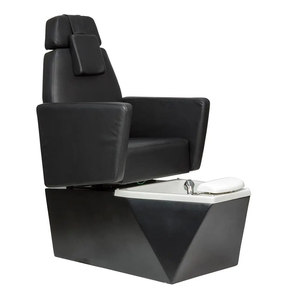 Каркас кресла из металла обеспечивает устойчивость конструкции. Благодаря поднимающимся подлокотникам посетитель без особых усилий сядет в кресло. Ванна выполнена из прочного акрила. В комплект входят сантехнические принадлежности и эффектная ЛЭД подсветка, которая может менять цвета. Обивка кресла выполнена из качественной экокожи, которая легко чистится и не боиться воздействия химических средств.
