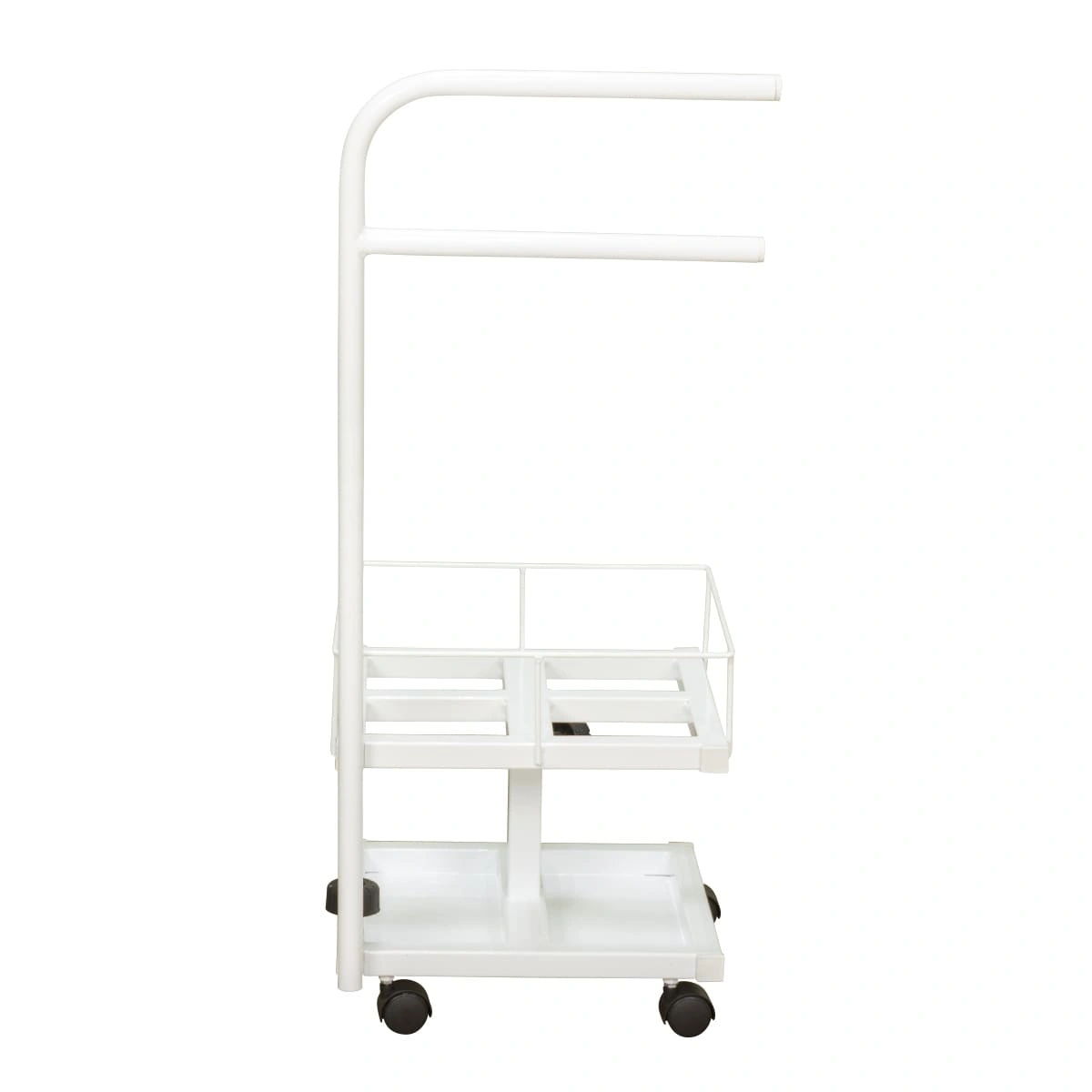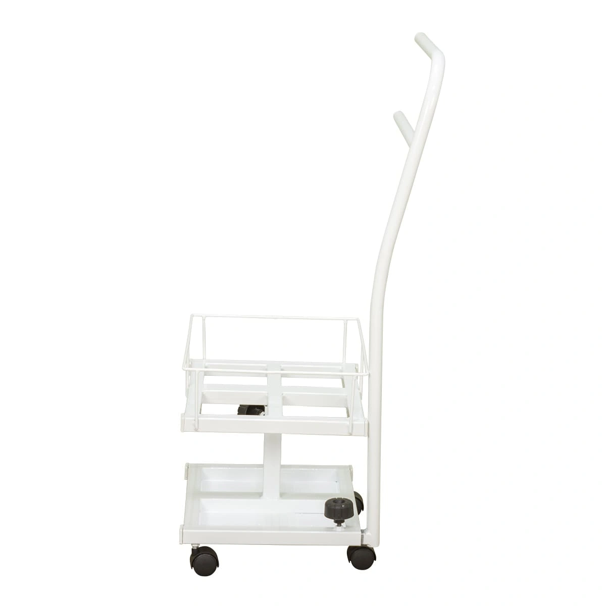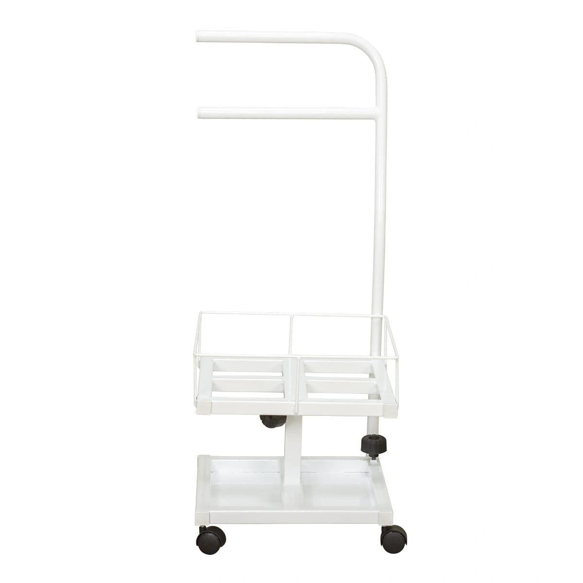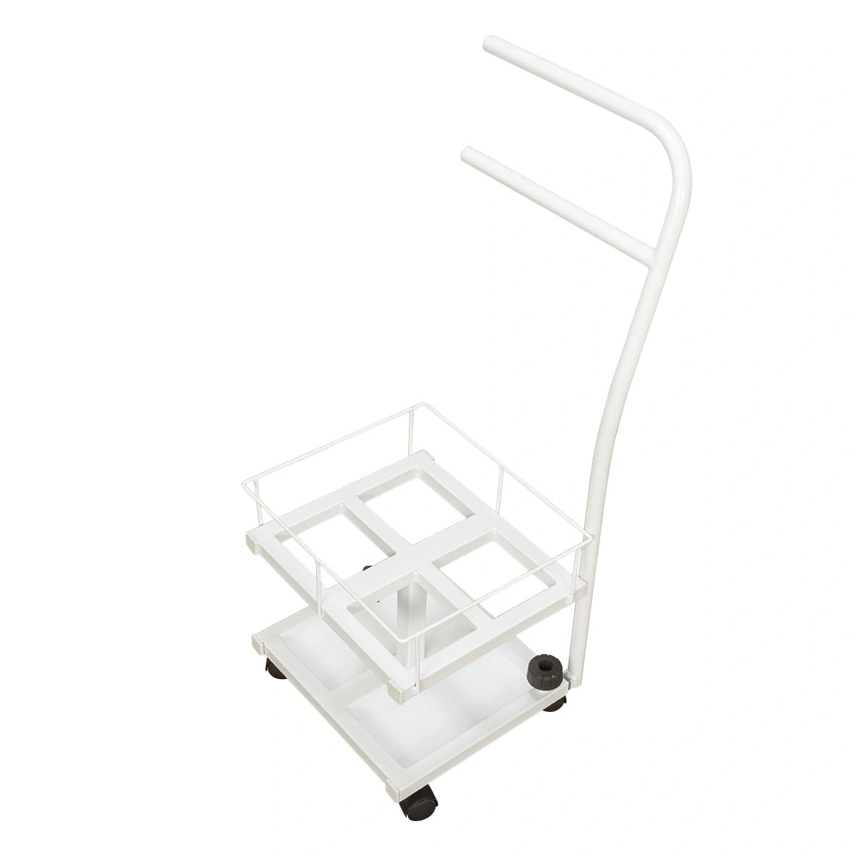 Благодаря двухъярусной конструкции можно установить не только ванную, но также необходимые инструменты и приспособления. Ванночка снимается для чистки и дезинфекции. Удобную ручку можно использовать как для перемещения педикюрного оборудования, так и для развешивания полотенец. Встроенные колеса обеспечивают маневренность и бесшумность передвижения по любому типу напольного покрытия.