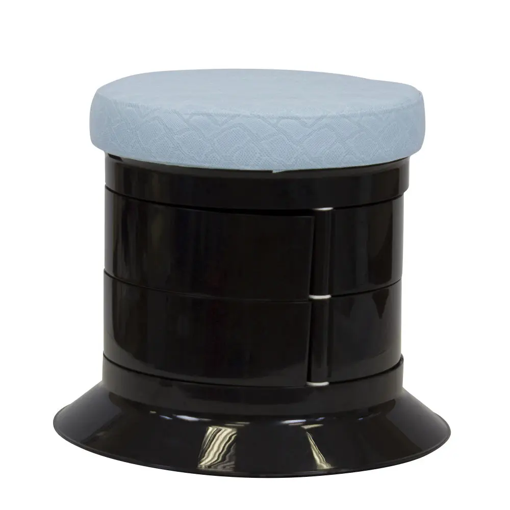 Удобную посадку обеспечивает мягкое сидение. Пуфик дополнен практичной деталью – тумбой из шести ящиков. Здесь мастер сможет держать приспособления, которые всегда должны быть под рукой.
