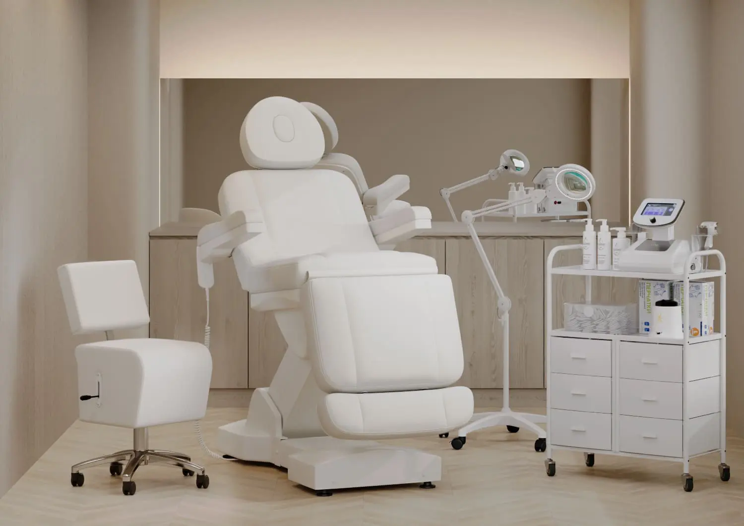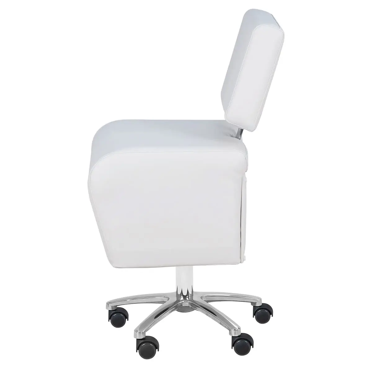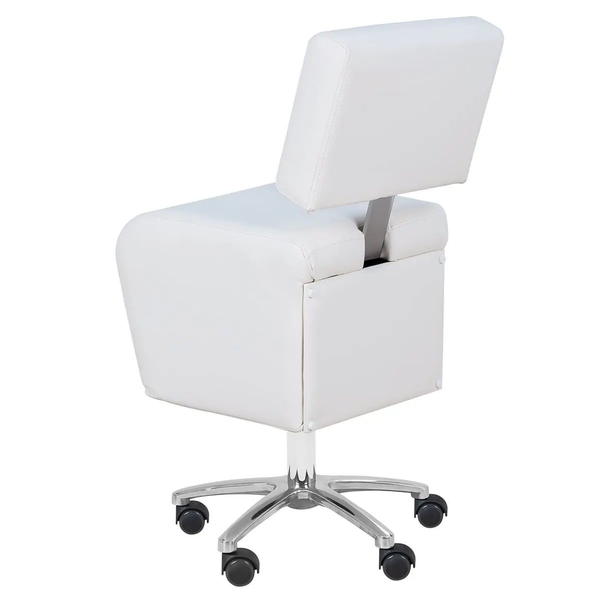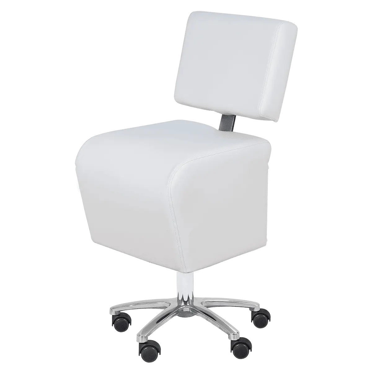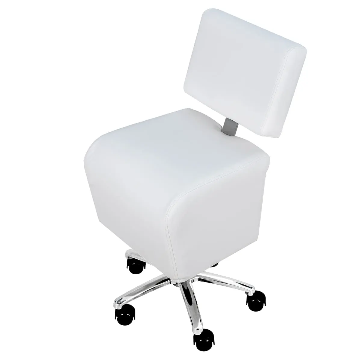Стул мастера имеет устойчивое хромированное пятилучье с манёвренными колёсам, он без усилий перемещается и не занимает много пространства в салоне. Удобная регулировка высоты на боковой поверхности – можно поднимать/опускать стул, не вставая с него. Идеально подойдёт для косметологических и спа-салонов.